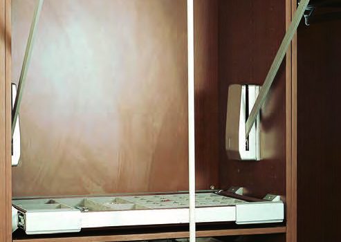 Wardrobe Lift / Pull-Down Closet Rod • Side Mounting • Three adjustable widths • Aluminium closet rod/silver plastic housing