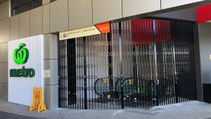 ATDC has installed its folding door commercial S08 curved folding security door to secure the curved entry to top of the escalators at Glenmore Park Shopping Centre near Sydney. Project Design Specifications This custom made curved folding door was supplied to suit an aperture 6600mm wide x 3500mm high on this architect specified project and it