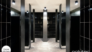 In new commercial buildings, some developers are considering ‘superloo’ arrangements as COVID-19 mitigation, or choosing to increase the space allowed for washroom facilities, as illustrated. Approaching a washroom, one normally encounters a vestibule or lobby with two doors. The role of this lobby is to prevent the transfer of sound into the office space, help