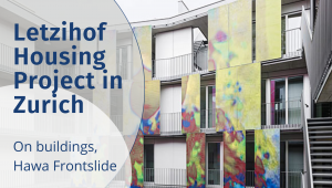 Sliding shutters lining the courtyards of the Letzihof residential complex not only protect against the sun and prying eyes when closed, but are also works of architectural art: the shutters are covered in fabric printed with pictures by artist Annelies Štrba. Industrial, unconventional, contemporary – that was the goal set for the architectural competition