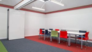 UCD Agile Offices in Ardmore Annex were designed to create flexible, fun and innovative workspaces. Typically, when a space gets smaller it also gets darker; the main challenge here was always to maintain an optimal level of light within the workspaces, whether the wall is open or closed. Hufcor’s Type 100K walls were installed with