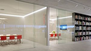 The ultimate in open space solutions A MOVEABLE GLASS WALL IS THE AESTHETIC AND FUNCTIONAL SPACE DIVISION SOLUTION. Retain superior visual connection for internal workspaces with Hufcor’s movable glass panels in either a framed or frameless top mounted solution. A glass internal wall combines practicality with beauty and creates a light and expansive ambience for