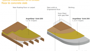 AngelStep® features unique patented technology that combines a sound absorber with impact and vibration damping, to consistently achieve up to the highest 6-star acoustic rating dependent on installation. AngelStep® GOLD8 is a universal acoustic underlay optimised for all types of floors from timber to bamboo, carpet, parquetry, cork and vinyl. Underfloor heating compatible, AngelStep® GOLD8
